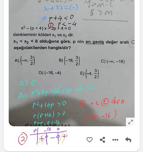 x ^ 2 - (p + 4) * x - 2p + 4 = 0 denkleminin kökleri x_{1} ve x_{2} dir. x_{1} < x_{2} < 0 olduğuna göre, p nin en geniş değer aralı C aşağıdakilerden hangisidir?