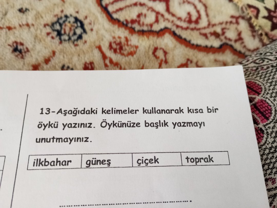 13-Aşağıdaki kelimeler kullanarak kısa bir öykū yazınız. Öykünüze başlik yazmayı unutmayinz. ilkbahar günes çiçek toprak