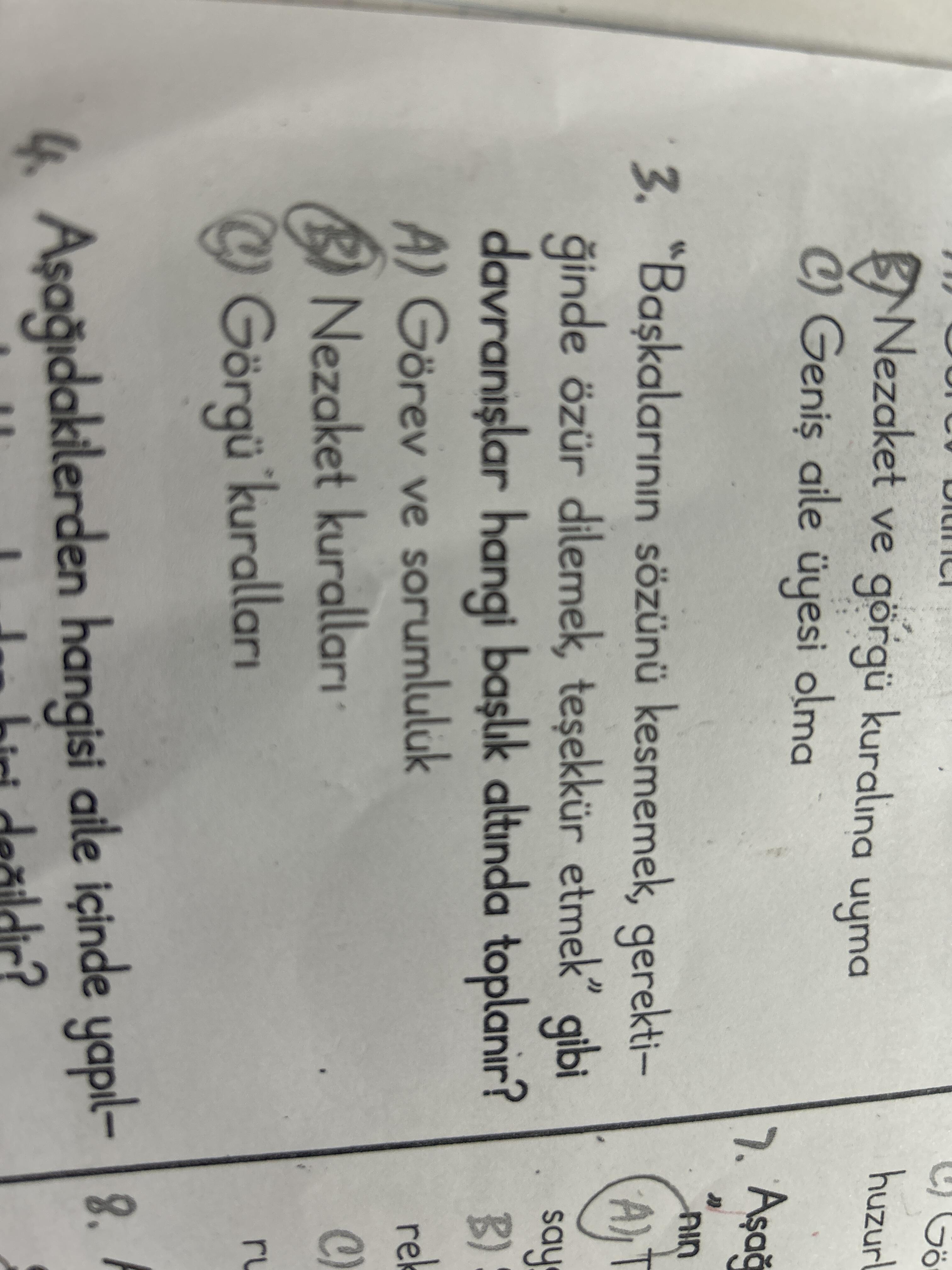 | E) Görgü kuralları | Nezaket, saygı ve empati odaklı davranışlar | Evet |