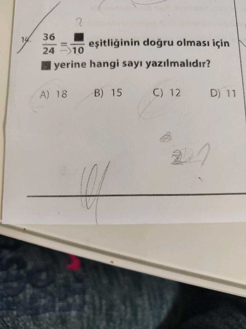 36 2410 eşitliginin doğru olması icin yerine hangi sayı yazılmalıdır? A) 18 B) 15 C) 12 D) 11