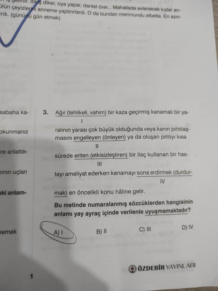 Bu metinde numaralanmış sözcüklerden hangisinin anlamı yay ayraç içinde verilenle uyuşmamaktadır?