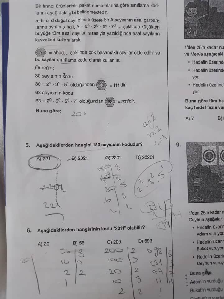 Ek Not: Fotoğraftaki notlarda da 2011 kodu için asal çarpanlara ayrılma denemeleri yapılmış ancak seçeneklerle uyuşmamış. Kod sistemi anlaşıldığı gibi uygulanmalı.