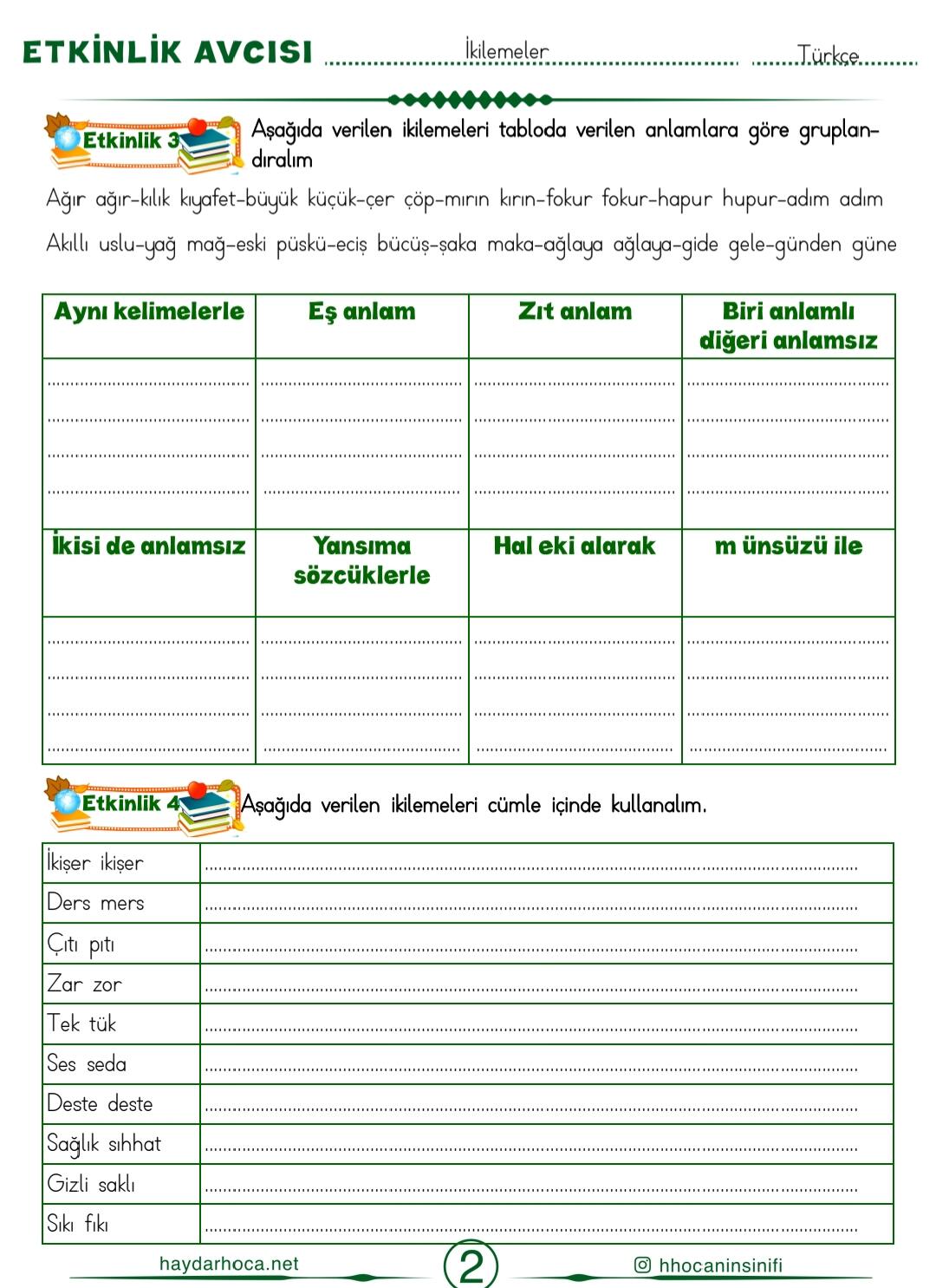 Aşağıda verilen ikilemeleri tabloda verilen anlamlara göre gruplandıralım: