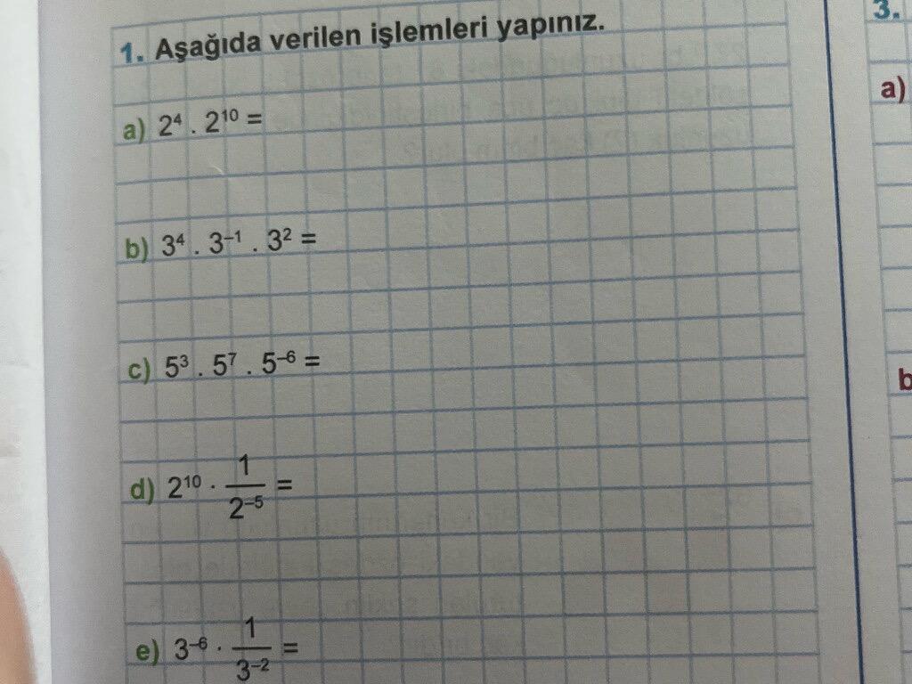 Üs kuralları: a^m\cdot a^n=a^{m+n}, a^{-n}=\dfrac{1}{a^n}, \dfrac{1}{a^{-n}}=a^n