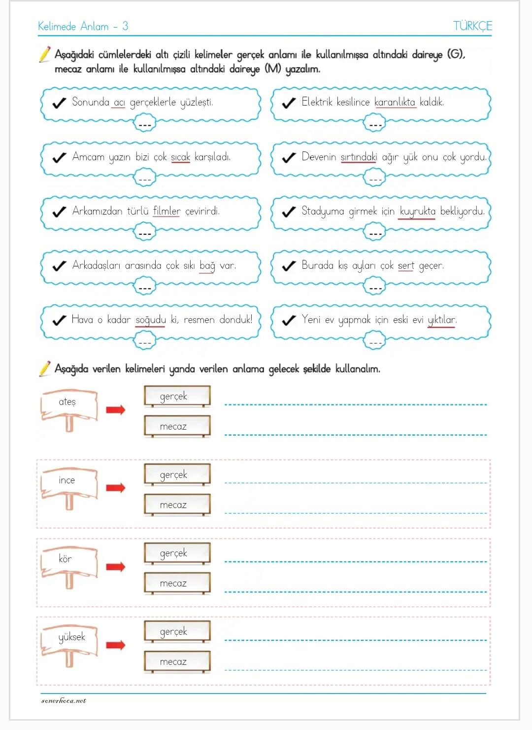 - Şarkı, edebi metin ve atasözlerinden mecazlı kullanımlara dikkat ederek pratik yapabilirler.