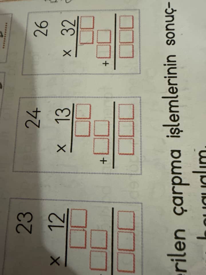 Elinizdeki resimde üç çarpma işlemi var. Her birini adım adım çözelim: