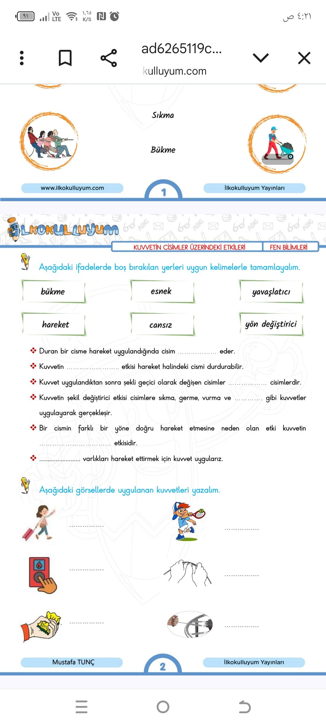 | 6 | ______ varlıkları hareket ettirmek için kuvvet uygulanır. | cansız | Cansız varlıklar hareket ettirilir. |
