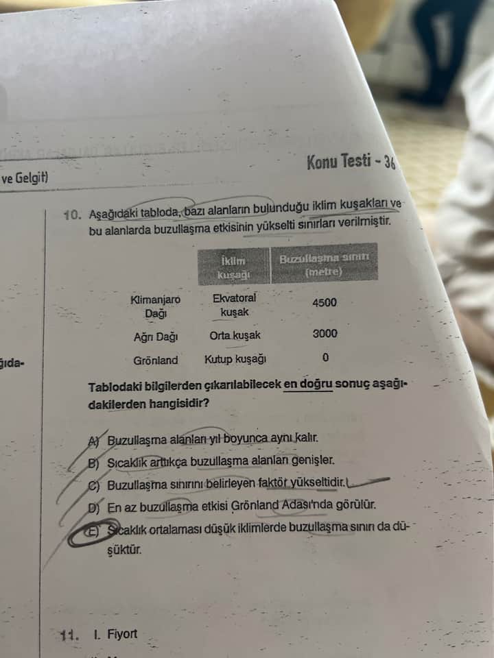 - C seçeneği: Yükseklik buzullaşma sınırı için bir neden değil, sonuçtur; asıl belirleyici sıcaklıktır.