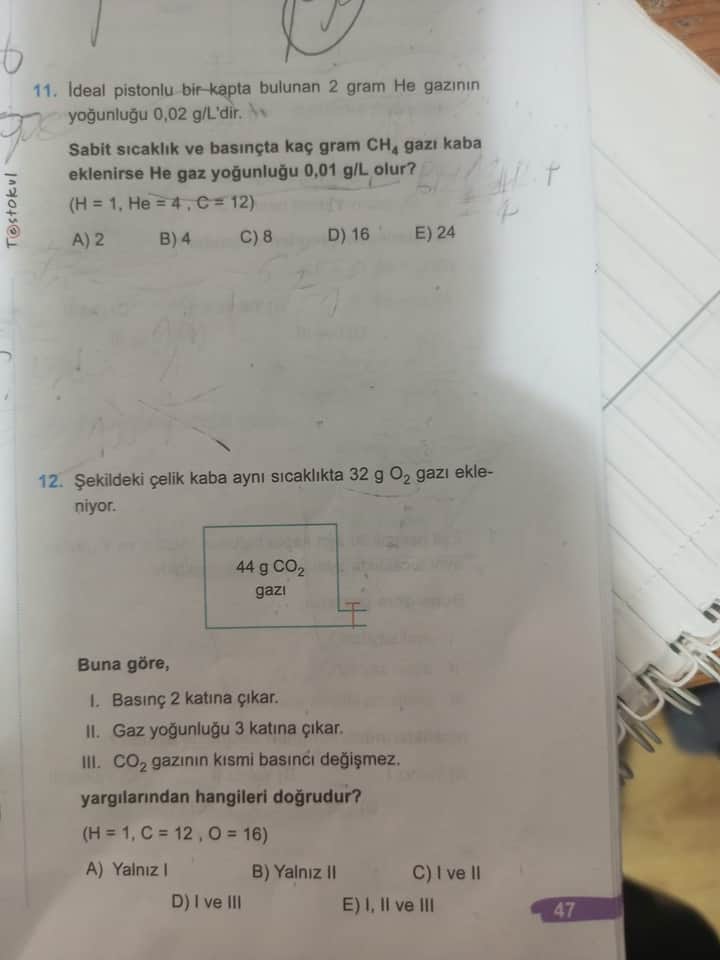 \text{1 g = 0 g (zaten eklendiği için)} + \text{x g (CH₄ gazı)}Dolayısıyla, x = -1, yani eklenen CH₄ gazının kütlesi yanlış hesap edildi. Burada bir hata bulunuyor çünkü başlangıçta gaz kütlesinin sabit kalması beklenirken, CH₄ gazı eklendiğinden dolayı 1 gram yanlış olmuş.