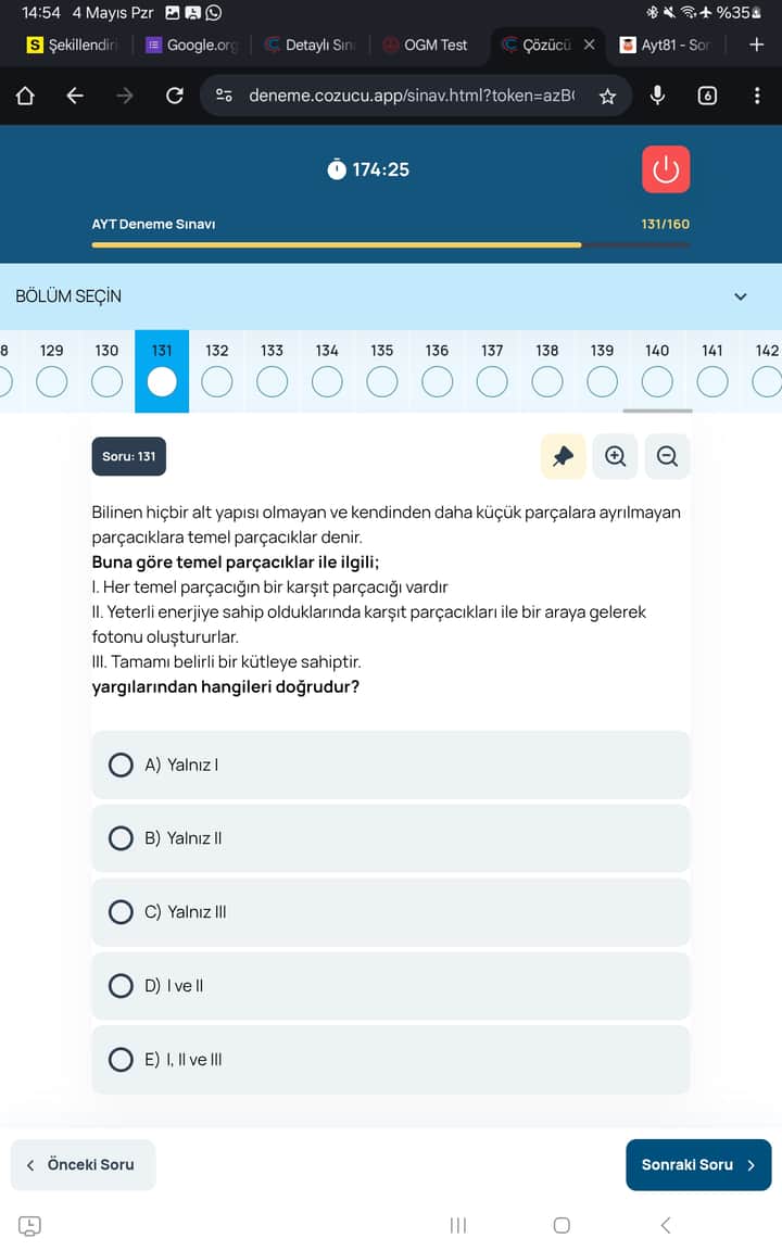 Dolayısıyla yalnız (I) ve (II) doğrudur. Doğru yanıt: D) I ve II