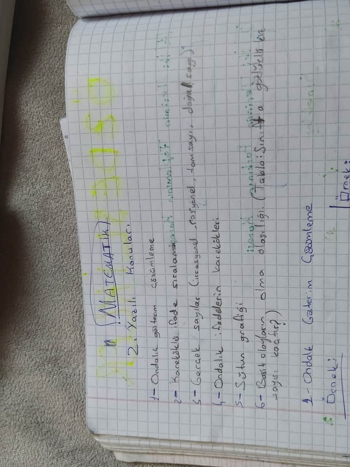 - Grafikler: Basit grafikler çizme ve grafik okumaya yönelik sorular. (Çizgi, sütun grafik vb.)