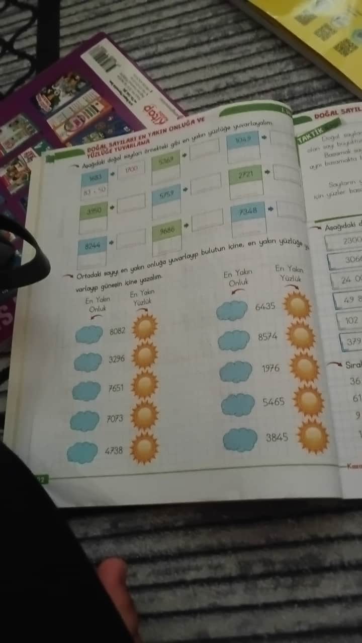 Resimdeki doğal sayıları en yakın onluğa ve en yakın yüzlüğe yuvarlamak.