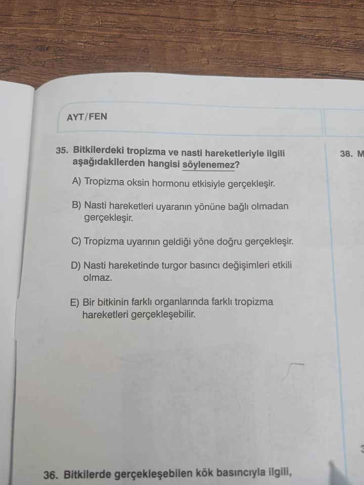 - (D) şıkkı yanlış ifadedir çünkü nasti hareketlerinde en kritik etkenlerden biri turgor basıncı değişimidir.