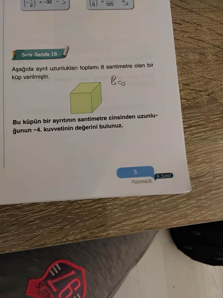 Bu küpün bir ayrıtının santimetre cinsinden uzunluğunun -4 kuvvetinin değerini bulunuz.