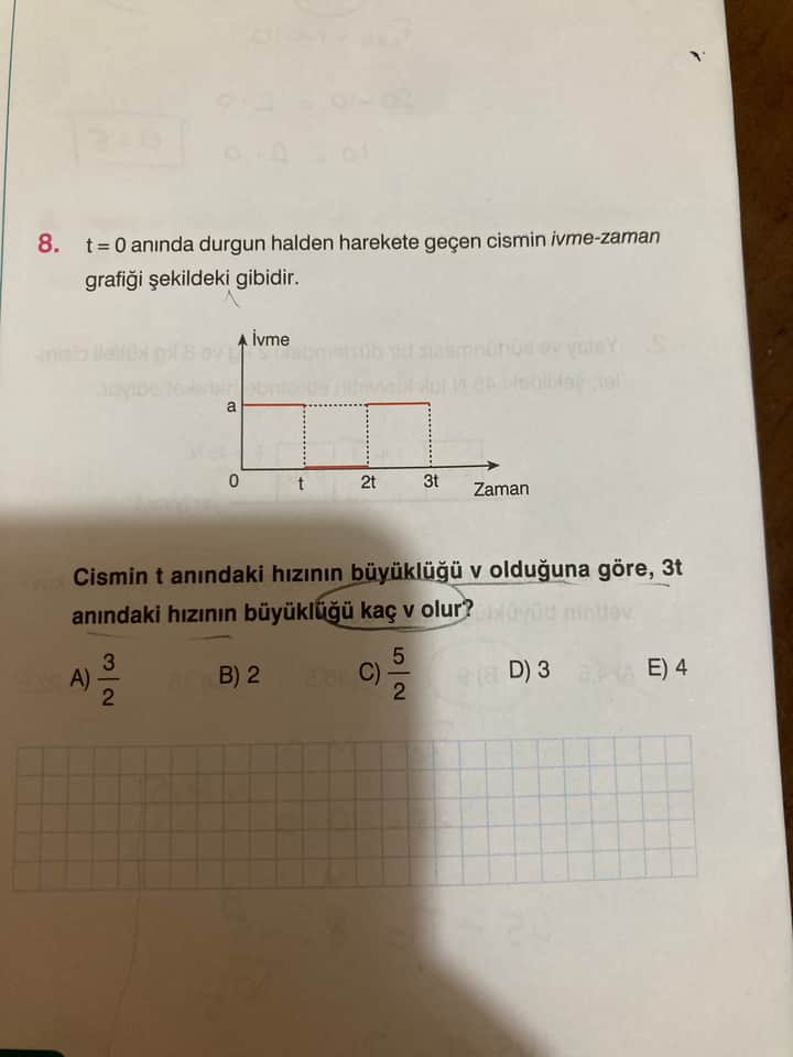 Soru: Cismin t anındaki hızının büyüklüğü v olduğuna göre, 3t anındaki hızının büyüklüğü kaç v olur?