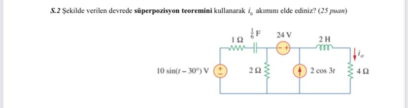 S.2 Şekilde verilen devrede süperpozisyon teoremini kullanarak i₀ akımını elde ediniz? (25 puan)