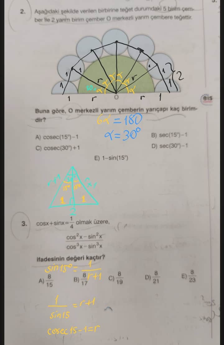 Maalesef, bu bir metin tabanlı bir platform olduğu için görselleri açıklayamam veya analiz edemem. Ancak, size trigonometri sorusuyla ilgili yardımcı olabilirim. Hangi bölümü anlamadığınızı belirtir misiniz?
