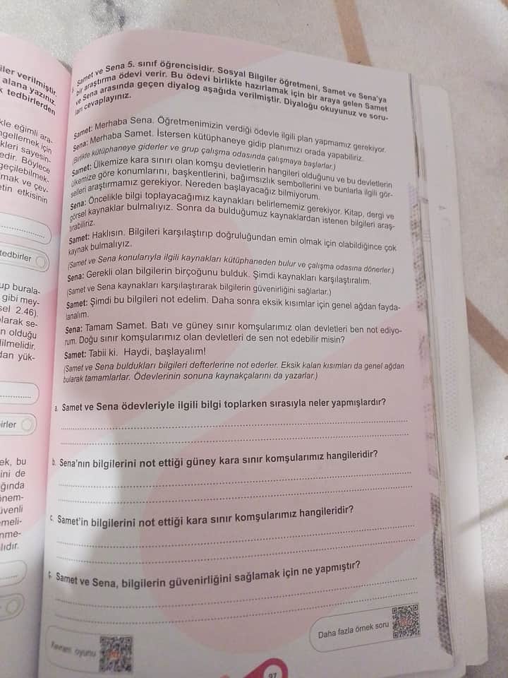 a. Samet ve Sena ödevleriyle ilgili bilgi toplarken sırasıyla neler yapmışlardır?