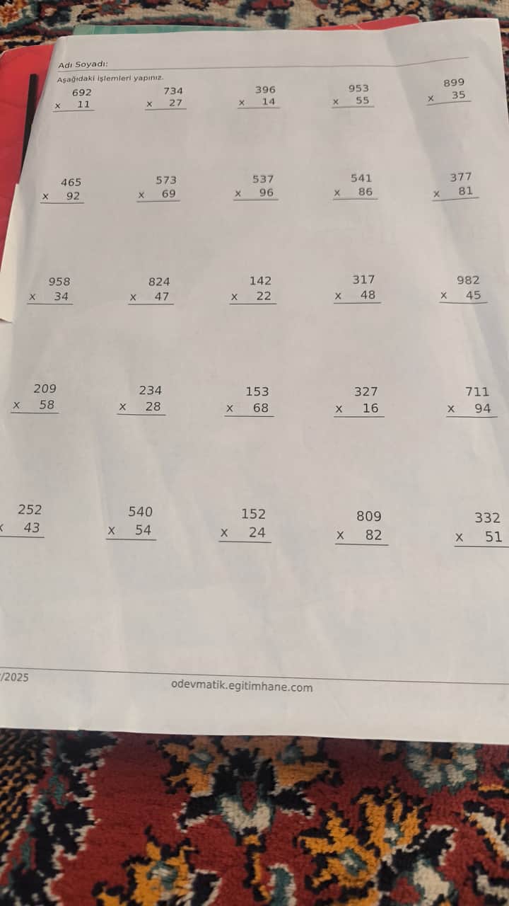 İstersen istersen her bir işlemin uzun çarpma şeklinde satır satır çözümünü de ayrı ayrı yazayım — hangi işlemler için adım adım görmek istersin belirt, hepsini tek tek gösterebilirim. @Mehmet_Gok