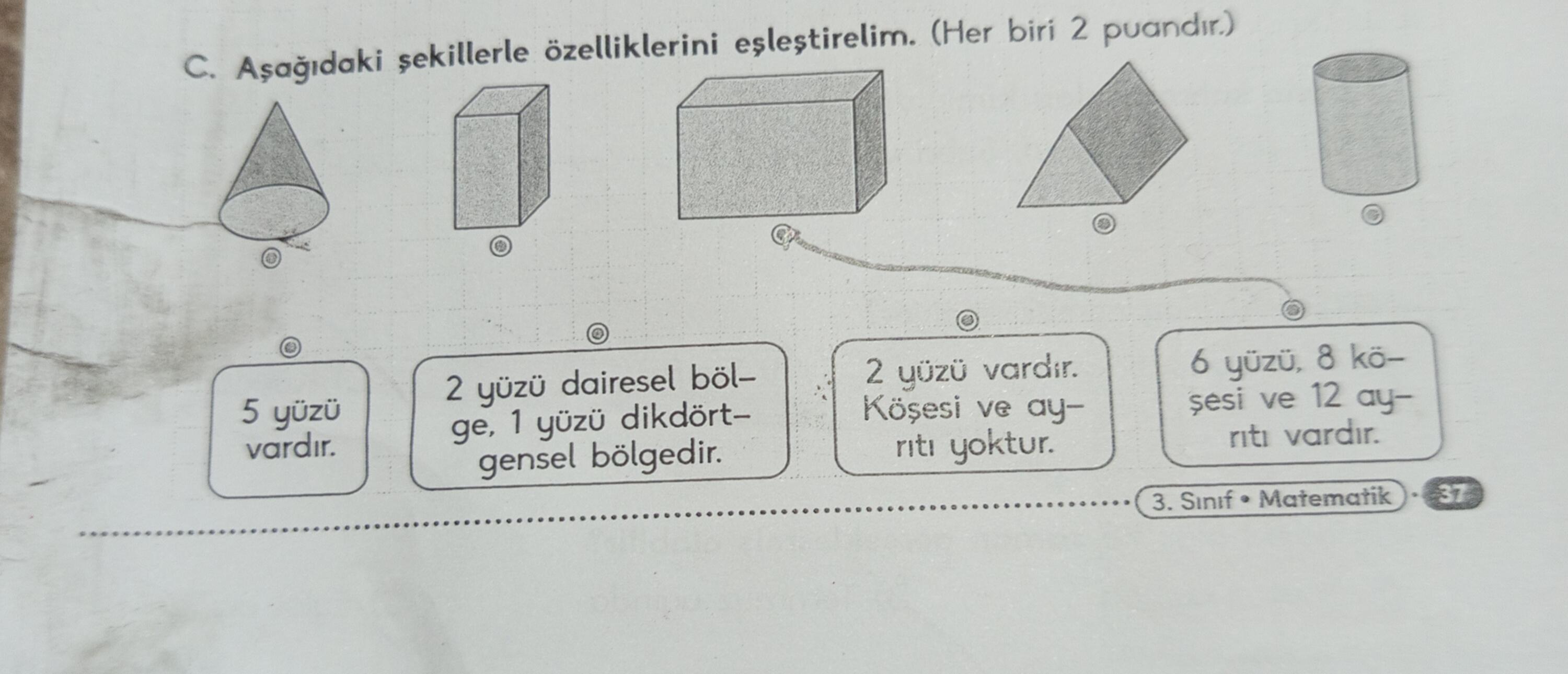 C. Aşağıdaki şekillerle özelliklerini eşleştirelim (Her biri 2 puandır.)