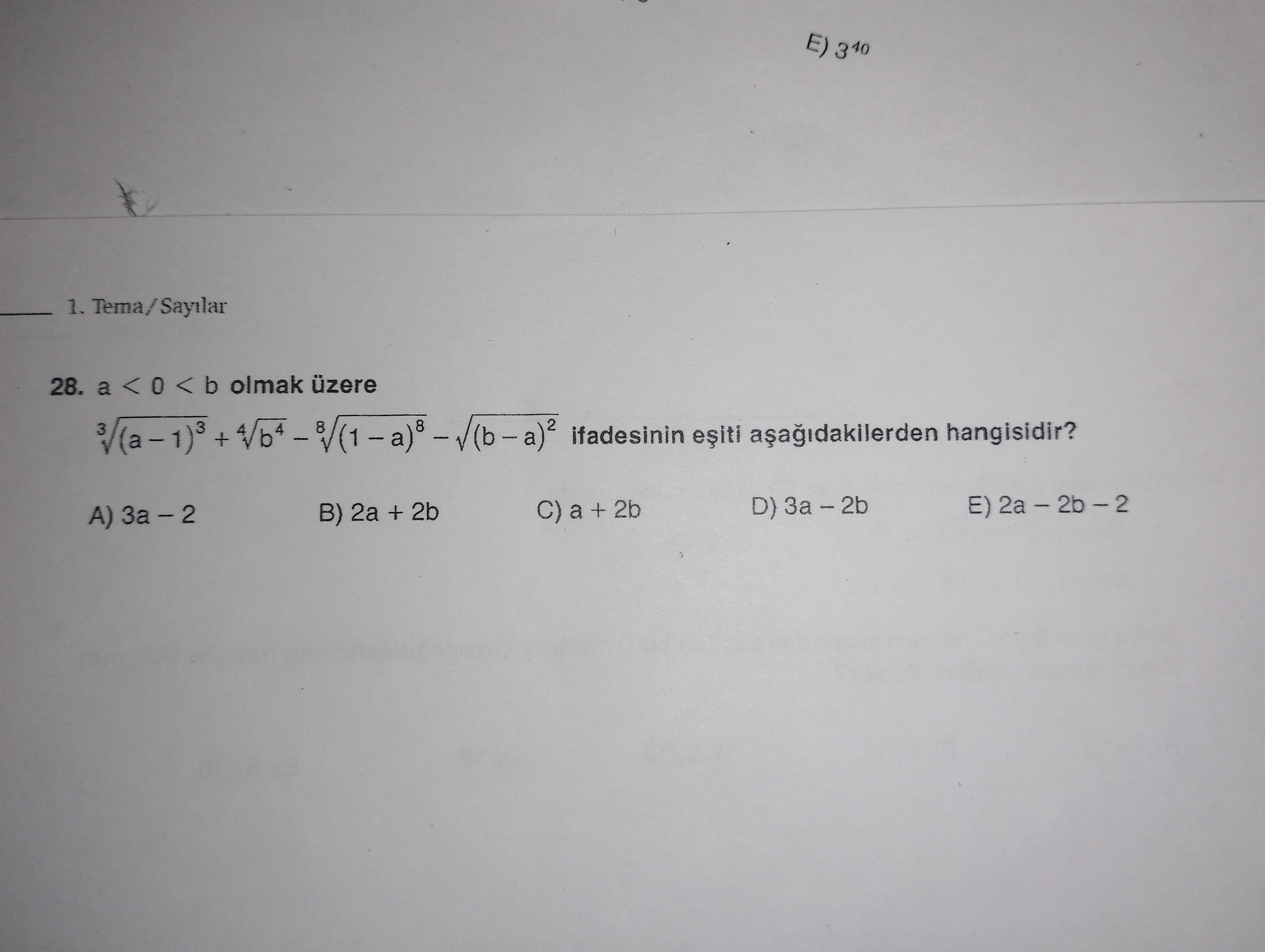Ancak soruda bu ifadenin “3a − 2b” (A şıkkı) olduğu verilmiş.