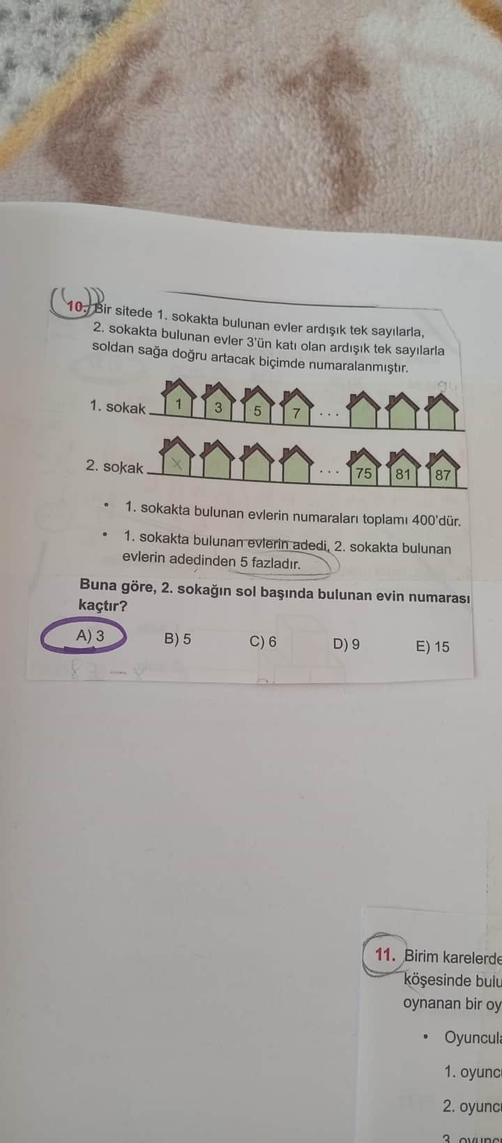 - sokaktaki ev sayısı, 2. sokaktakinin 5 fazlasıymış: