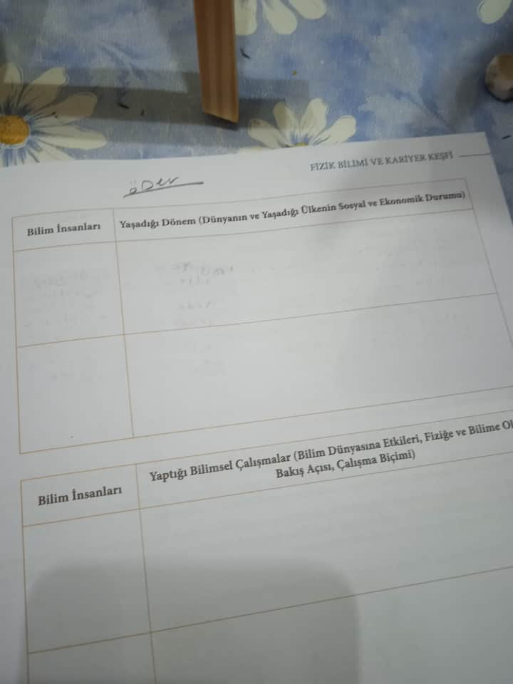 Cevap: Fizik bilimi ile ilgili önemli bilim insanları, yaşadıkları dönemlerin sosyal ve ekonomik durumları ile yaptıkları bilimsel çalışmalara ilişkin bilgilerin doldurulması gerekiyor.