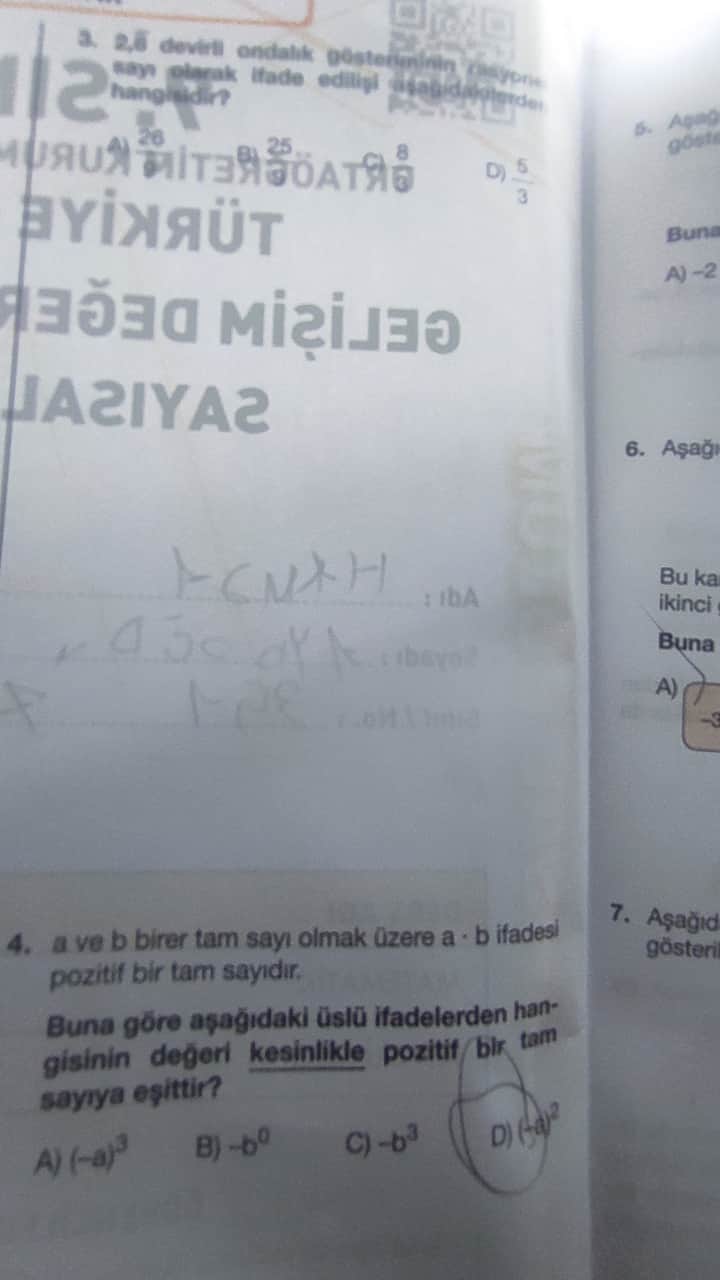 - a ve b birer tam sayı olmak üzere a·b ifadesi pozitif bir tam sayıdır. Buna göre aşağıdaki üslü ifadelerden hangisinin değeri kesinlikle pozitif bir tam sayıya eşittir?