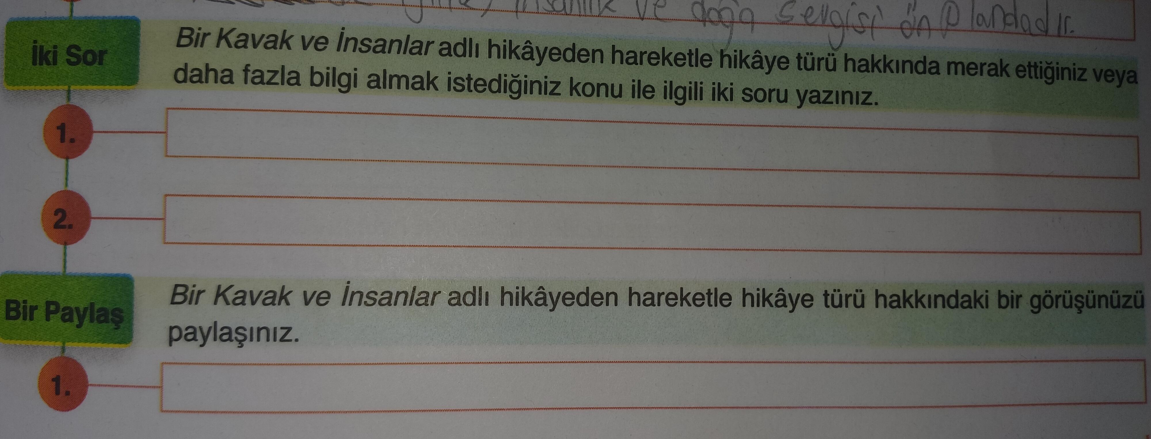 Elif Naz, hemen yardımcı oluyorum. Aşağıda hem iki soru hem de hikâye türü hakkında bir görüş örneği bulabilirsin — istersen bunları aynen yazabilirsin veya kendi cümlelerinle değiştirebilirsin.