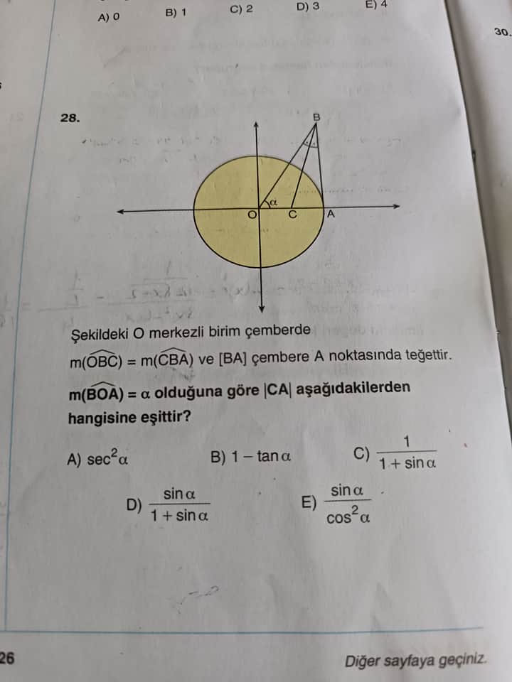 | A) sec²α | 1 / cos²α | Genellikle bu tip teğet problemlerinde çıkmaz |