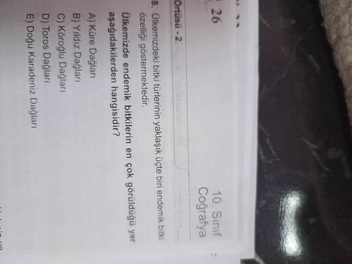 - Soru: “Türkiye’de endemik bitkilerin en çok görüldüğü yer aşağıdakilerden hangisidir?”