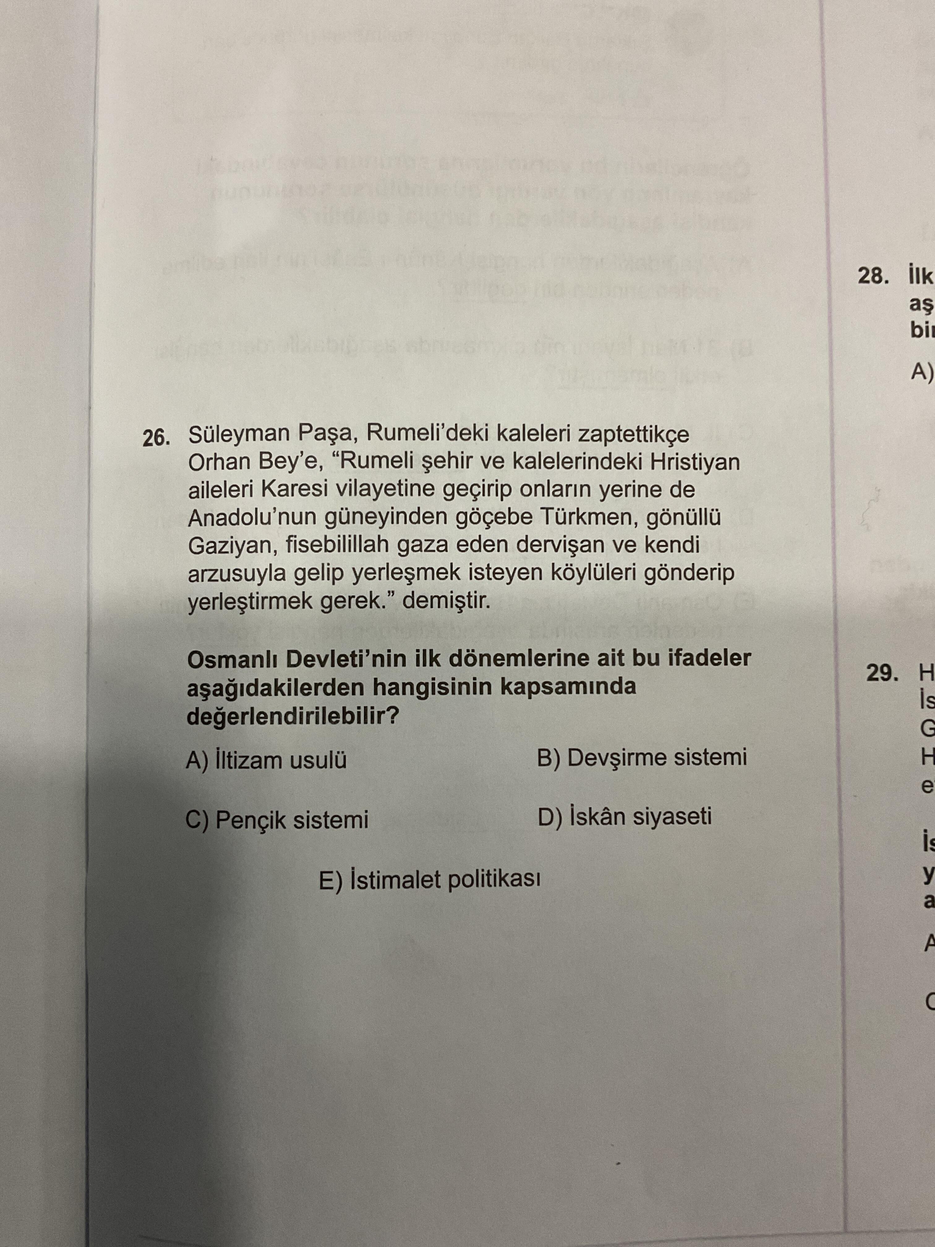 26. Süleyman Paşa’nın Rumeli’de Uyguladığı Yerleştirme Politikası Hangi Başlık Altında Değerlendirilebilir?