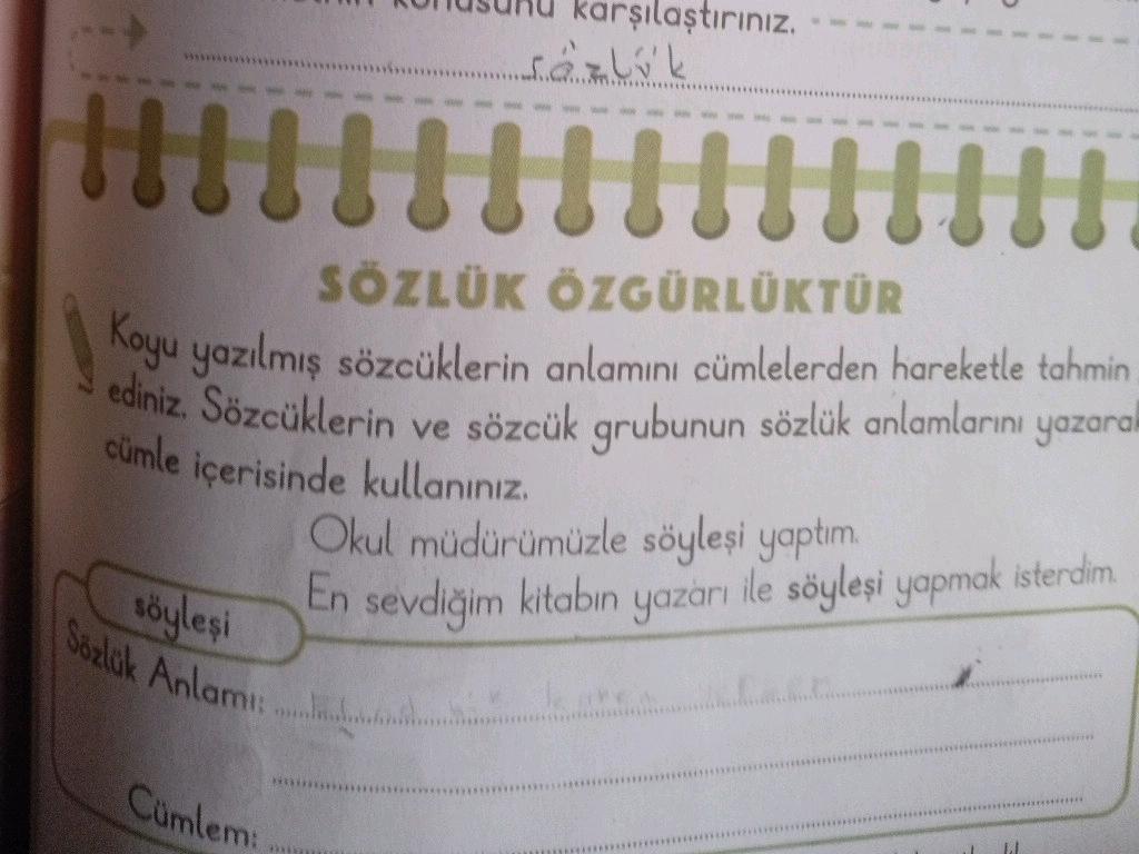 Koyu yazılmış sözcüklerin anlamını cümlelerden hareketle tahmin ediniz. Sözcüklerin ve sözcük grubunun sözlük anlamlarını yazarak cümle içerisinde kullanınız.