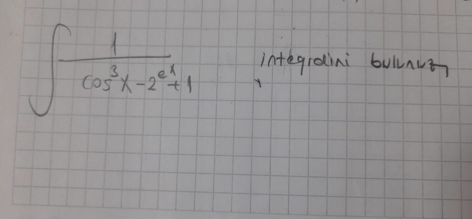 Verilen integralin doğasını anlamak için, \cos^3 x - 2e^x + 1 ifadesine odaklanabiliriz. Şayet bu ifade bazı noktalarda sıfır değerine yaklaşırsa, sonucun bir indirgemeye veya yakınsama sorununa sebep olabileceğini göz önünde bulundurmalıyız. Bu noktada, matematiksel yazılımlar (Mathematica, MATLAB, vb.) veya matematiksel tabanlı bir yazılım kullanarak türevlerini ve fonksiyon sahipliğini kontrol ederek daha iyi sonuçlara varabiliriz.