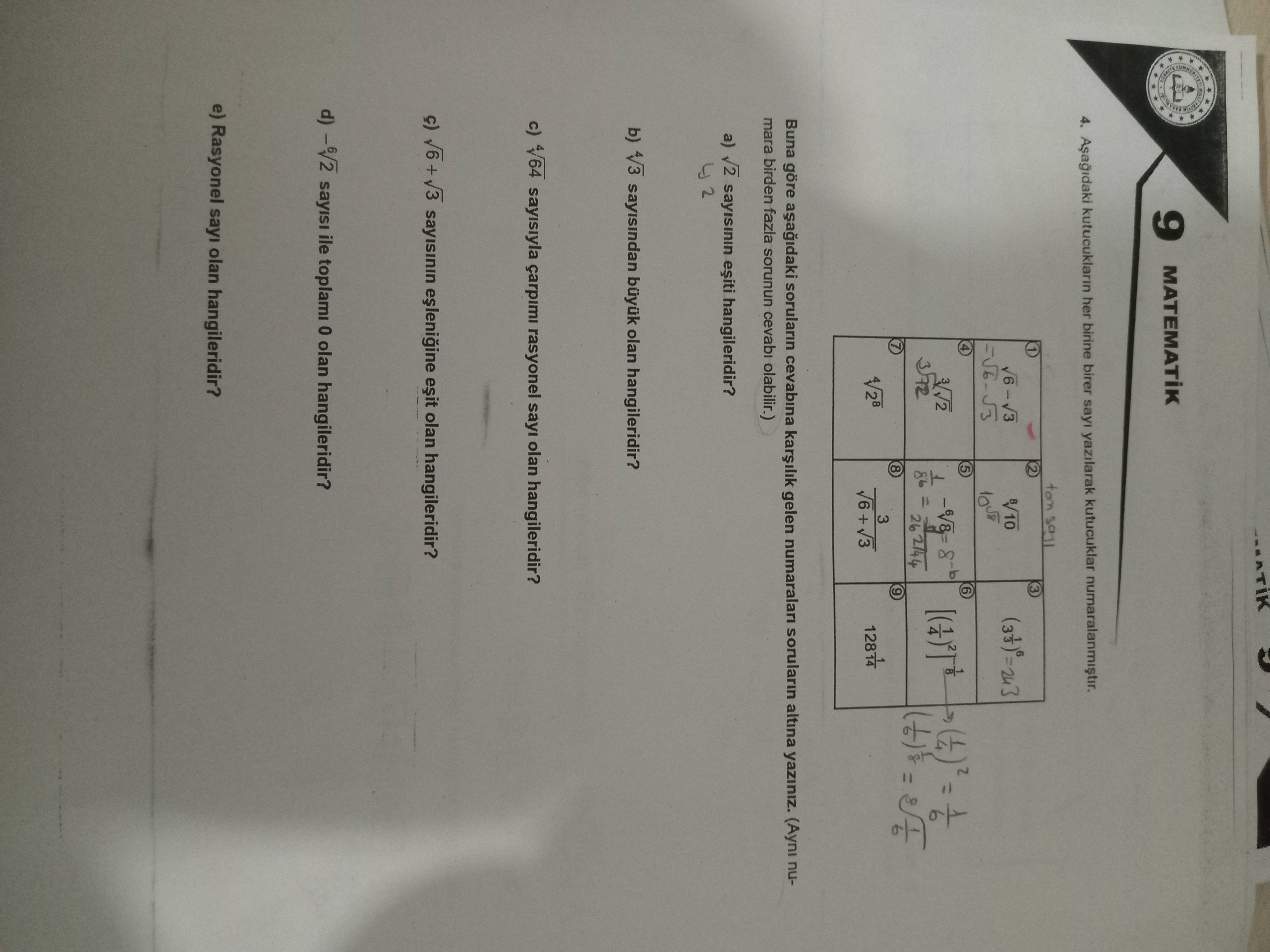Bunun cevabı genelde diğer ifadeler arasında \sqrt{2} ile aynı değere sahip bir ifade olacaktır.