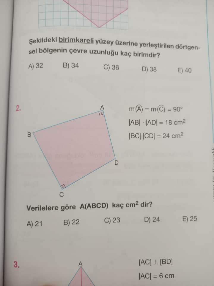 2. Verilenlere göre A(ABCD) kaç cm²’dir?