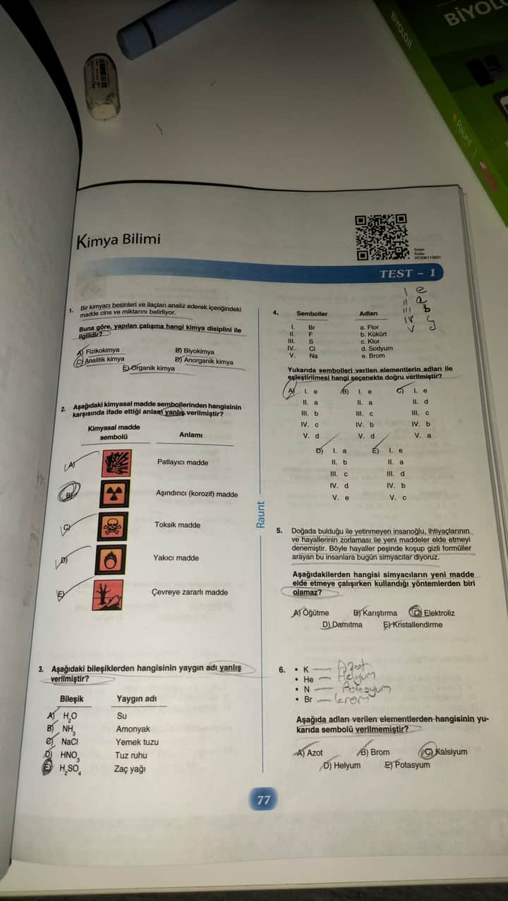 Umarım bu bilgiler, nerede hata yaptığınızı netleştirir ve kimya testinizi düzeltmenize yardımcı olur. Kolay gelsin!