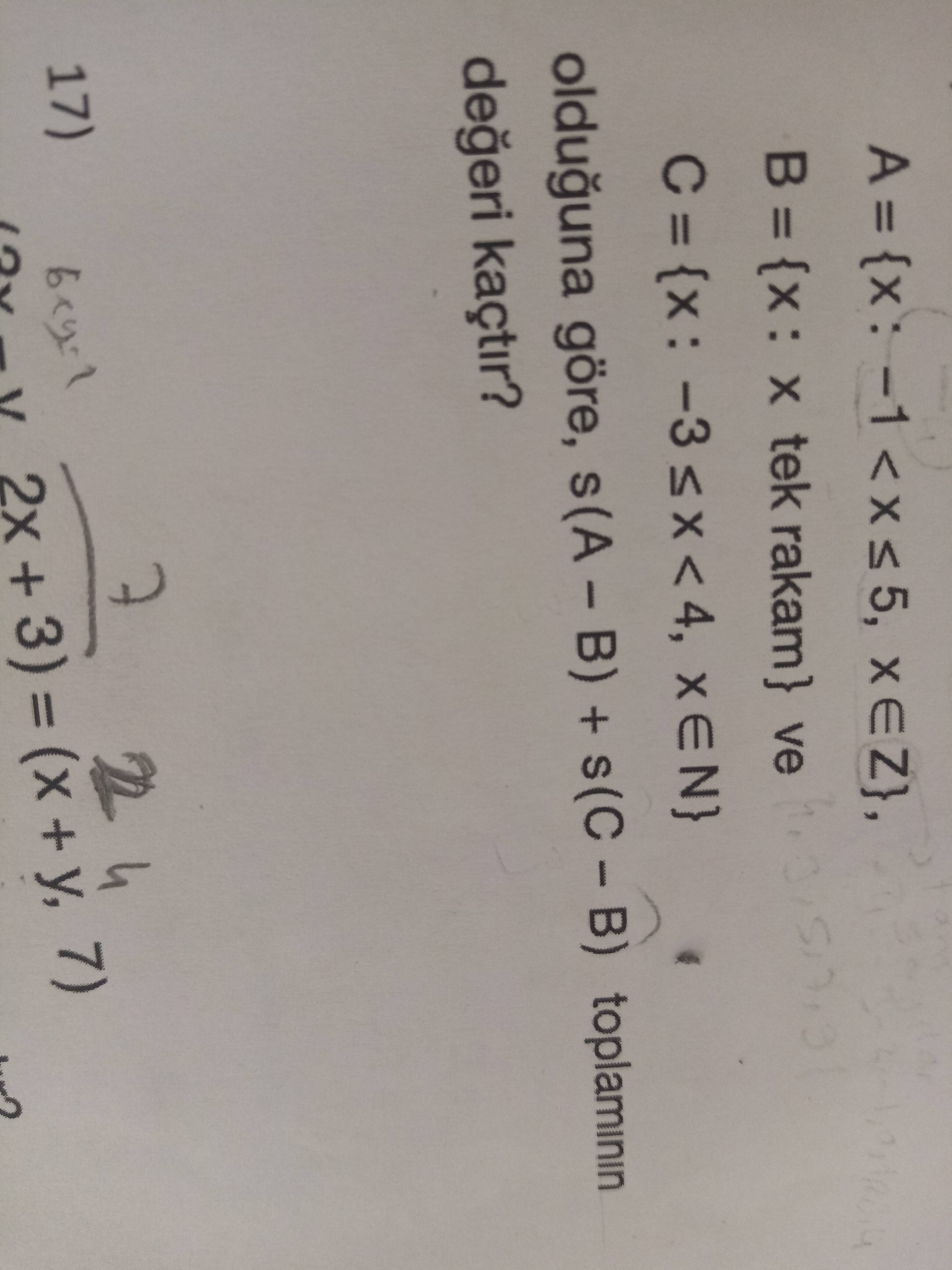 B = {x: x tek rakam} ve