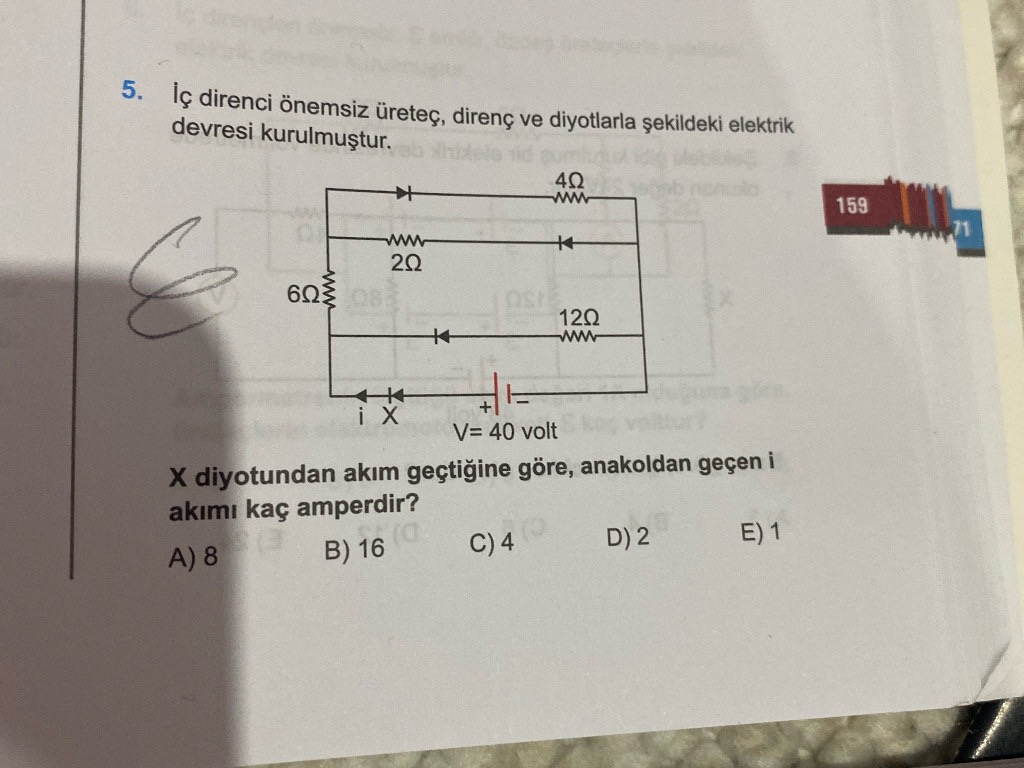 Burada X diyotu ve 6 Ω direnç seri, 2 Ω direnç ile aynı hat boyunca paralel olabilir gibi gözükse de diyotların yönlerine dikkat.