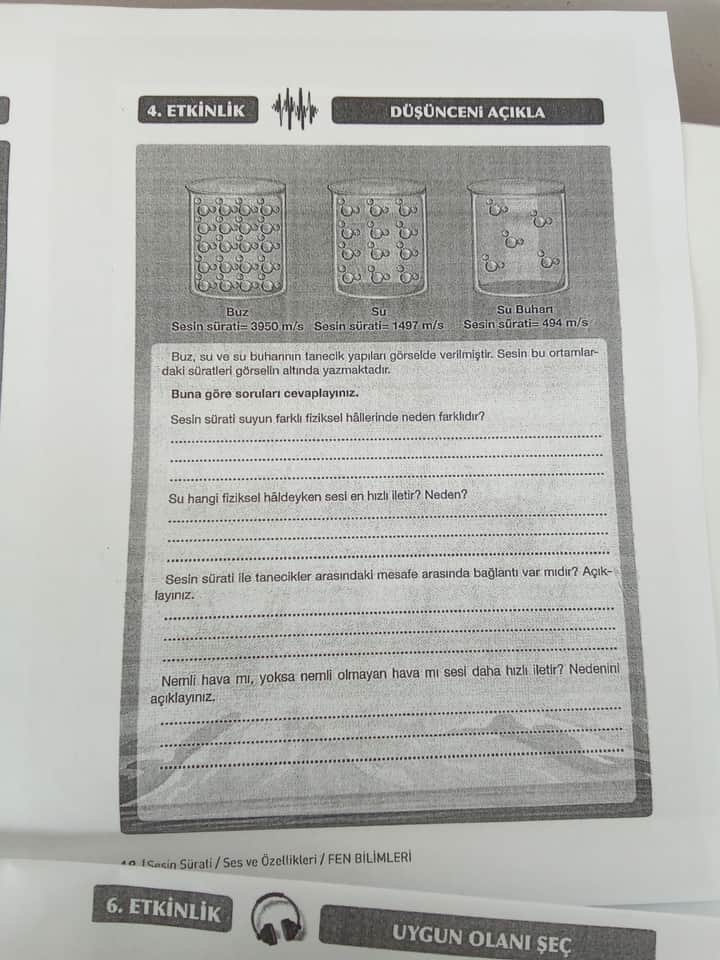 1. Sesin sürati, suyun farklı fiziksel hâllerinde neden farklıdır?