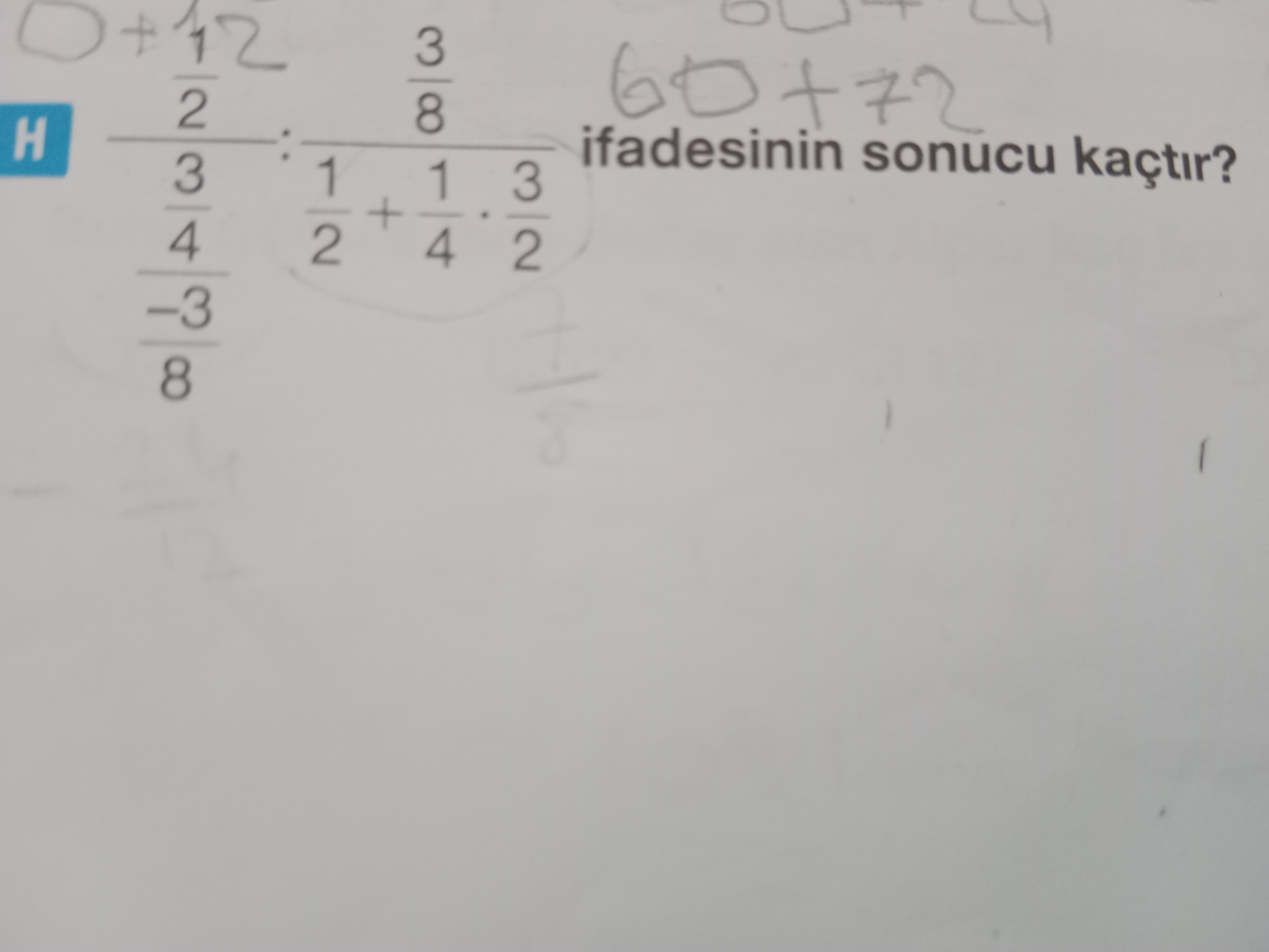 Gönderdiğiniz görseldeki işlem (kesirler ve sayılar) net olarak görünmediği için doğru bir çözüm yapabilmemiz adına, ifadenin yazılı hâlini paylaşmanız çok önemli. Örneğin “(1 + 1/3) : (3/4 + 2/5)” gibi net bir biçimde yazabilirseniz adım adım detaylı bir çözüm sunabiliriz.
