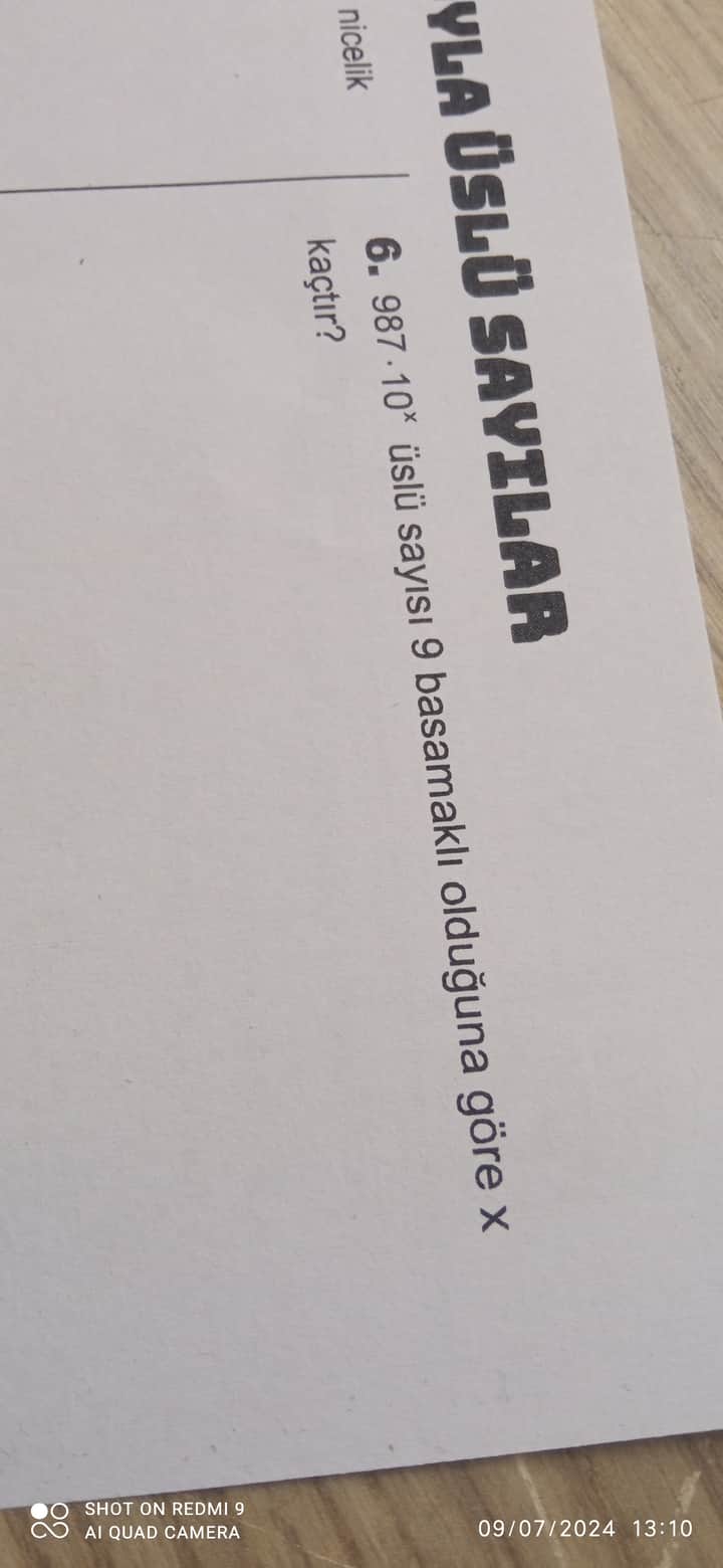 987 · 10^x üslü sayısı 9 basamaklı olduğuna göre x kaçtır?
