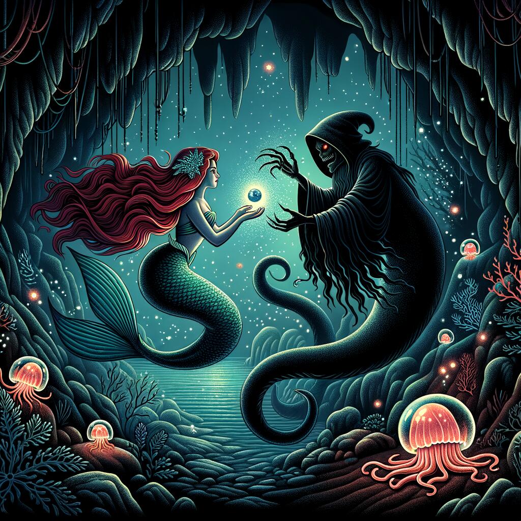 - Tanım: Deniz cadısının mağarasında, ikili bir pazarlık. Cadı, sihirli bir iksir sunuyor ve kız sesini veriyor. Karanlık, mistik bir ortam.