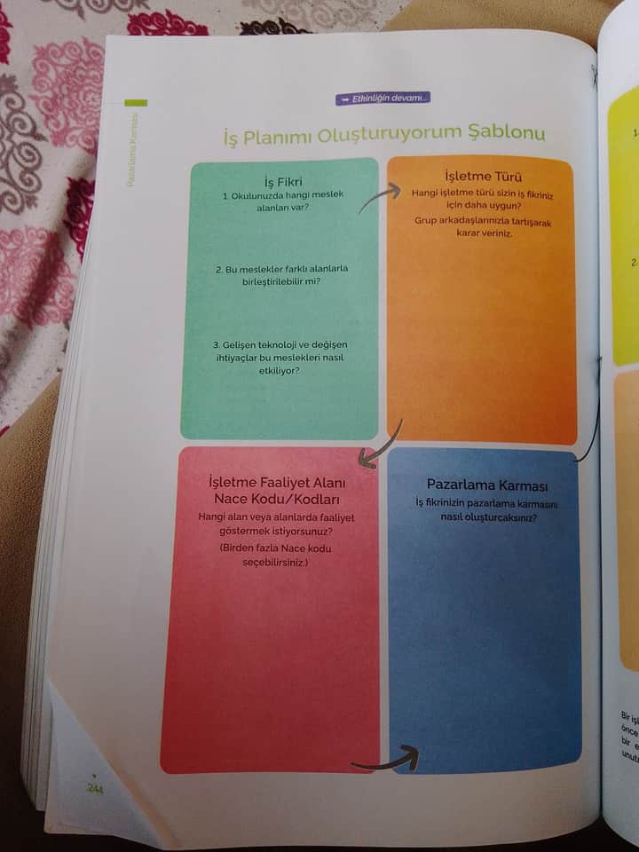 9. Sınıf Mesleki Gelişim Atölyesi Kitabı Sayfa 244: “İş Planımı Oluşturuyorum Şablonu”
