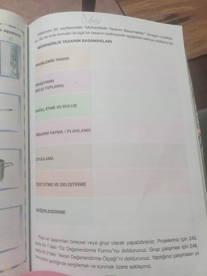 Mühendislik Tasarım Basamakları Tablosunu Tamamlama