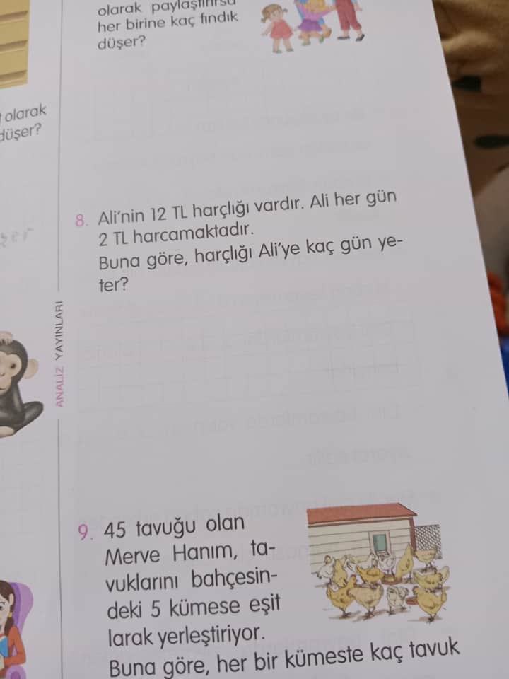 8. Soru: Ali’nin 12 TL harçlığı vardır. Ali her gün 2 TL harcamaktadır. Buna göre, harçlığı Ali’ye kaç gün yeter?