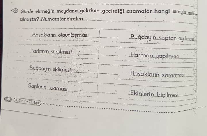 Şiirde ekmeğin meydana gelirken geçirdiği aşamalar hangi sırayla anlatılmıştır? Numaralandıralım.