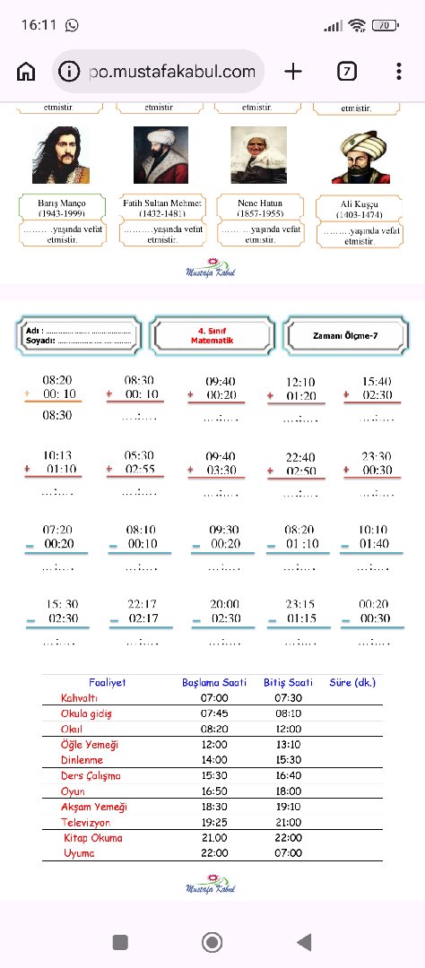 İlkokulda sabah 4 ders (3 saat 10 dk) + öğleden sonra 3 ders ≈ 6 saat. Resimdeki “6:11” belki toplam süreyi işaret ediyor (yaklaşık hesaplama).