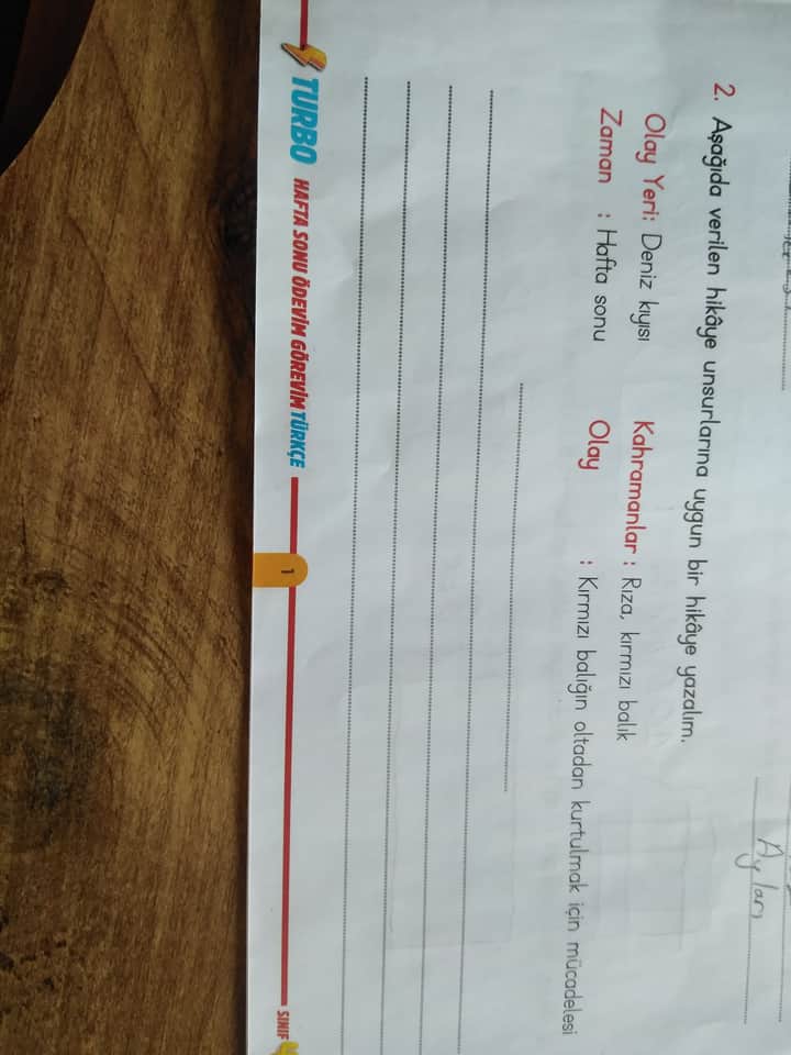 Aşağıda verilen hikâye unsurlarına uygun bir hikâye yazalım