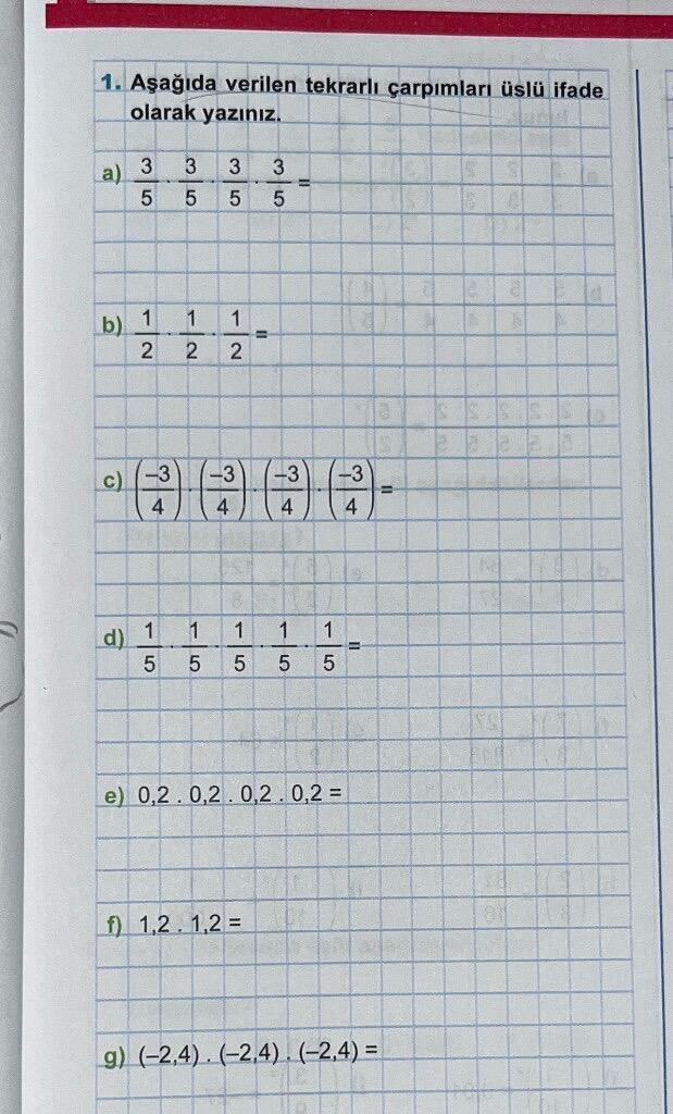 Bu problemde: Tekrarlı çarpımlar üs ile kısaltıldı.